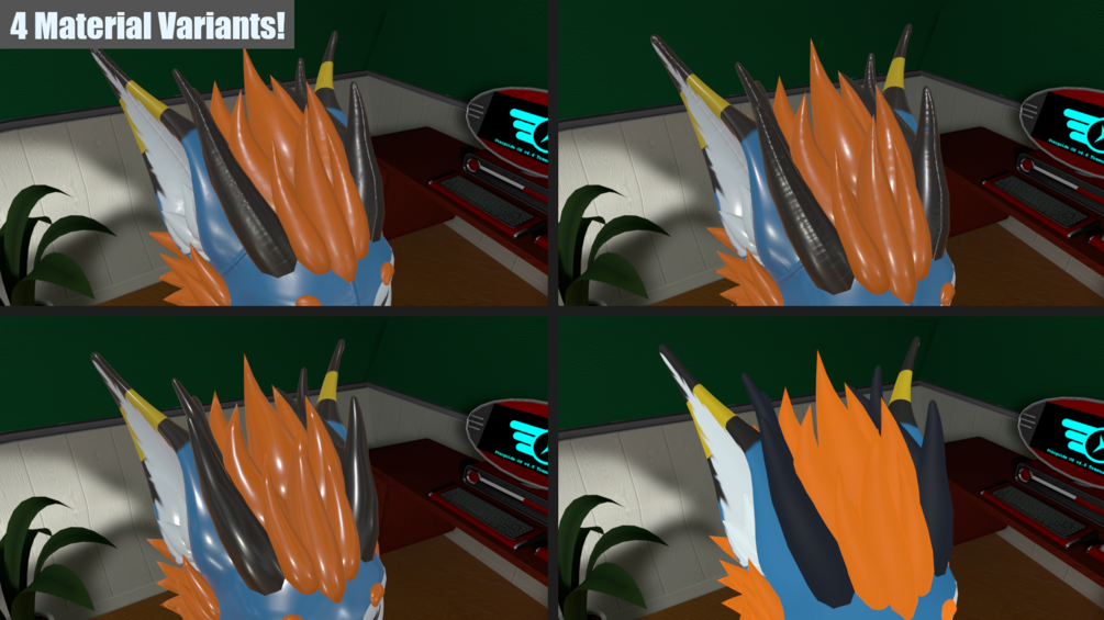• Use the color slider to pick the basecolor you want for each hair item in “Icyvarix/FloppyNardoHorns/Materials”, or use the substance painter file if you'd like to make a design that isn't a solid color.